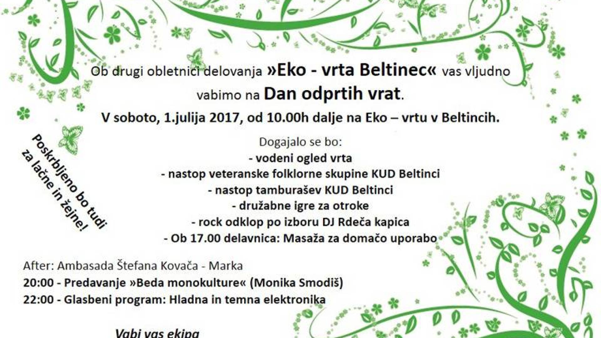 Eko vrt BeltinciOb drugi obletnici delovanja »Eko - vrta Beltinec« vas vljudno vabimo na