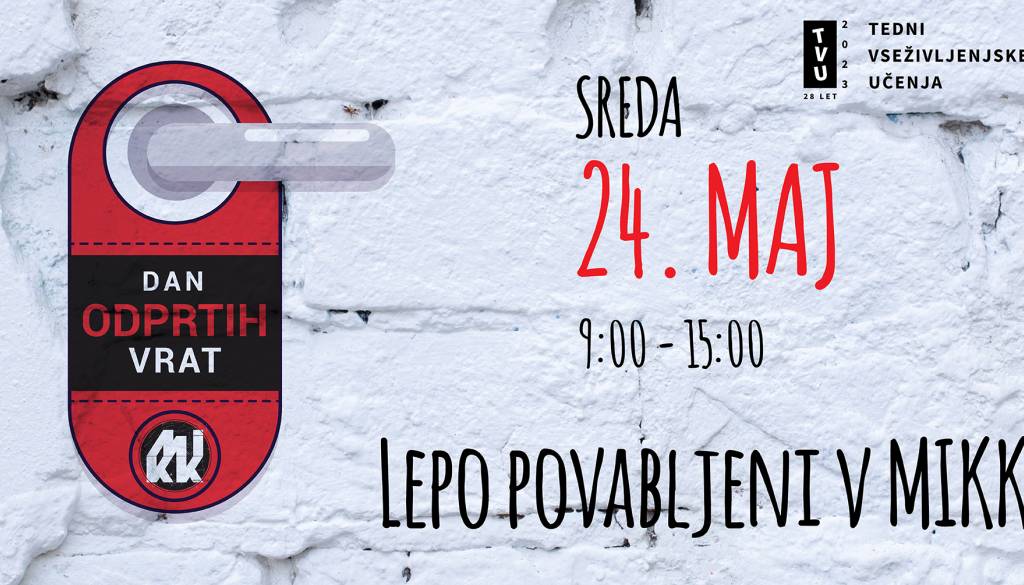 V sredo, 24. maja 2023, lepo povabljeni v MIKK na Dan odprtih vrat, katerega pripravljamo v sklopu Tednov vseživljenskega učenja 2023.