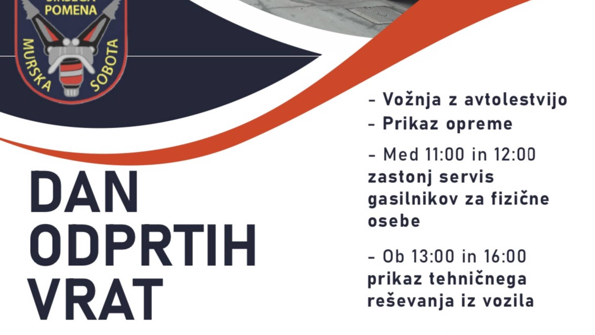 Vljudno vas vabimo na dan odprtih vrat PGD Murska Sobota. Dogodek se bo odvijal v nedeljo, 22.10.2023, od 11. ure zjutraj do 17. ure popoldne pri našem gasilskem domu na Cankarjevi ulici 75.