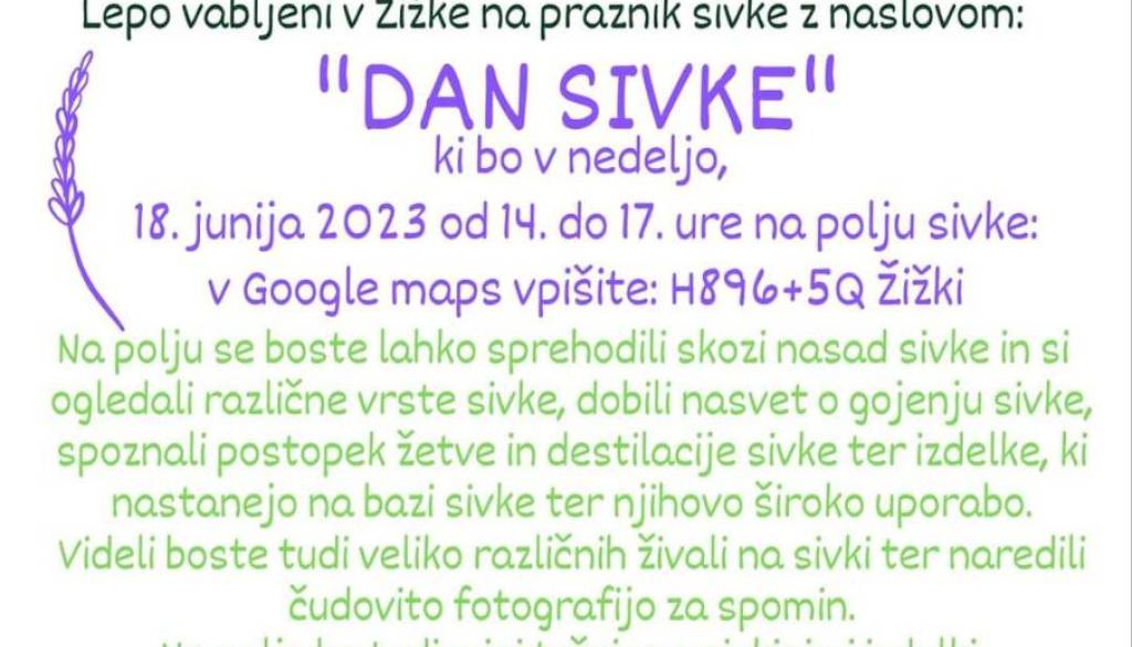 Dan sivke Jana Bohar | 7. junij 2023 18:49 v Termin Nedelja, 18. junij 2023 14:00 - Nedelja, 18. junij 2023 17:00 Lokacija Žižki Vabljeni!