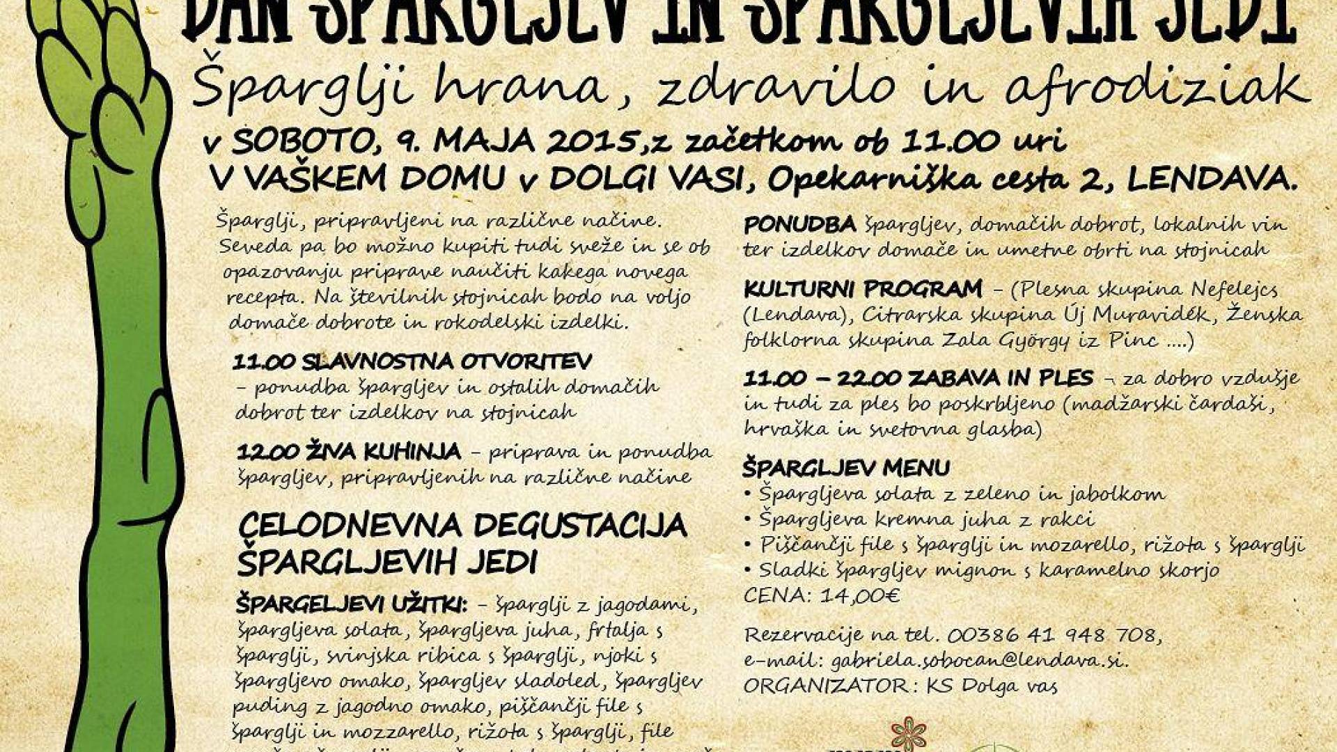 Vaški dom Dolga vasPrireditev špargljev bo potekala v soboto, 9. maja ob 11. uri.