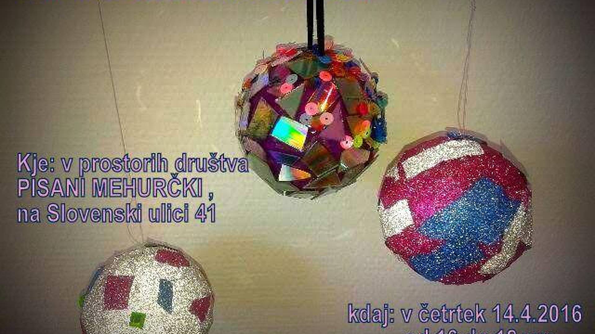 V prostorih gledališkega društva PISANI MEHURČKI Slovenska ulica 41Izdelovali bomo disco kroglo. Otroci vljudno vabljeni.