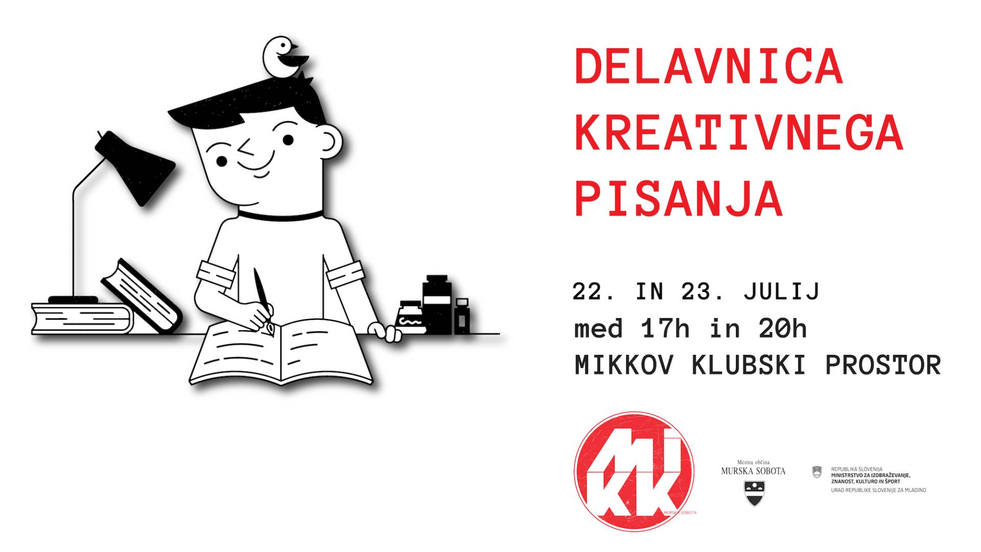MIKK Murska Sobota 22.-23. julij 2021 med 17h in 20h Klubski prostor ____________ Kaj? Delavnica kreativnega pisanja v sklopu Literarnega natečaja Splet besed ...