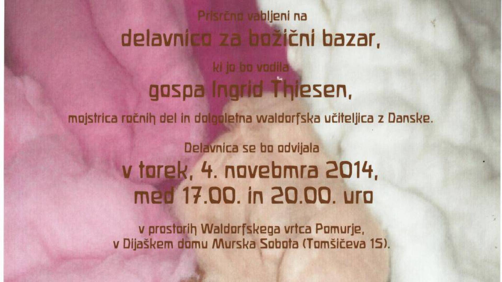 Gospa Ingrid Thiesen, dolgoletna waldorfska učiteljica z Danske in prava mojstrica ročnih del, bo delila z nami svoje neizmerno znanje in vodila delavnico v tudi v našem vrtcu. Na delavnici bo glavni poudarek na suhem filcanju (polstenju) in pletenju.