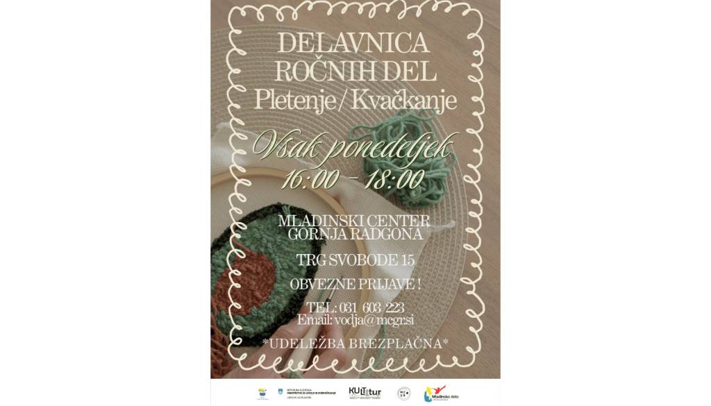 Mladinski center Gornja Radgona🧶✨ DELAVNICA ROČNIH DEL – PLETENJE & KVAČKANJE ✨🧶