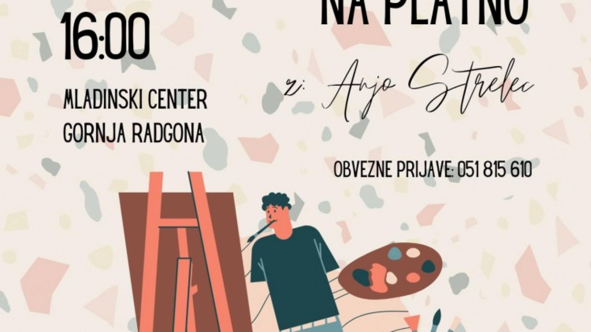 Mladinski center Gornja RadgonaSe rad/a prepustiš doživetju trenutka? In z ustvarjanjem izliješ svoja čustva? To vsekakor koristi vsem. Na delavnicah slikanja na platno lahko izrazimo vse emocije ob slikanju enega motiva in s tem lahko nastane posebna slika. Ob druženju, izmenjavanjem zgodb in izkušenj z drugimi pa bo še toliko bolj zabavno.