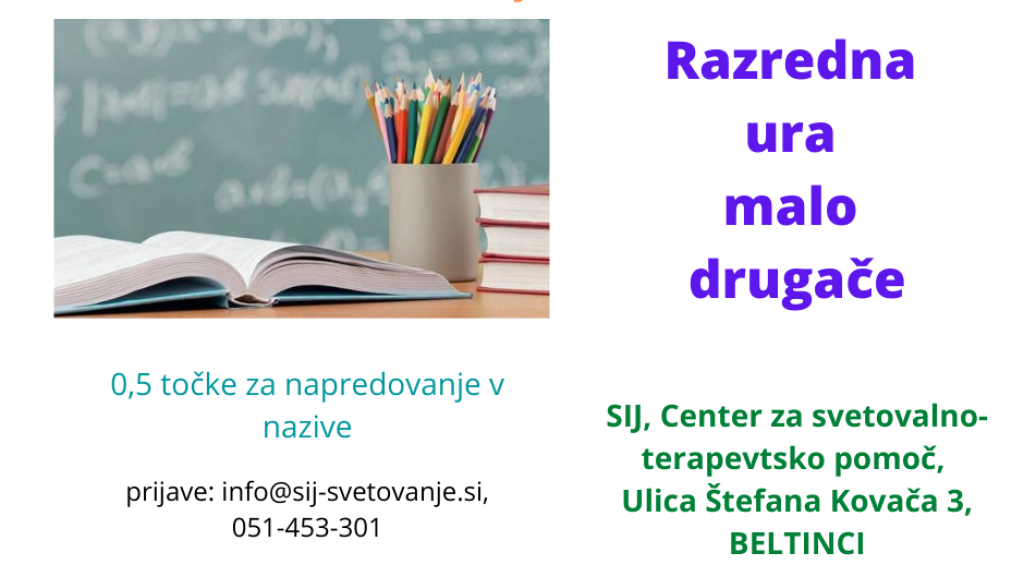 Delavnica za učitelje razrednike v osnovni in srednji šoli RAZREDNA URA MALO DRUGAČE