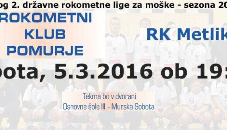 Tekma 12. kroga v 2. državni rokometni ligi za moške Metlika je uvrščena 3 mesta višje od Pomurja.