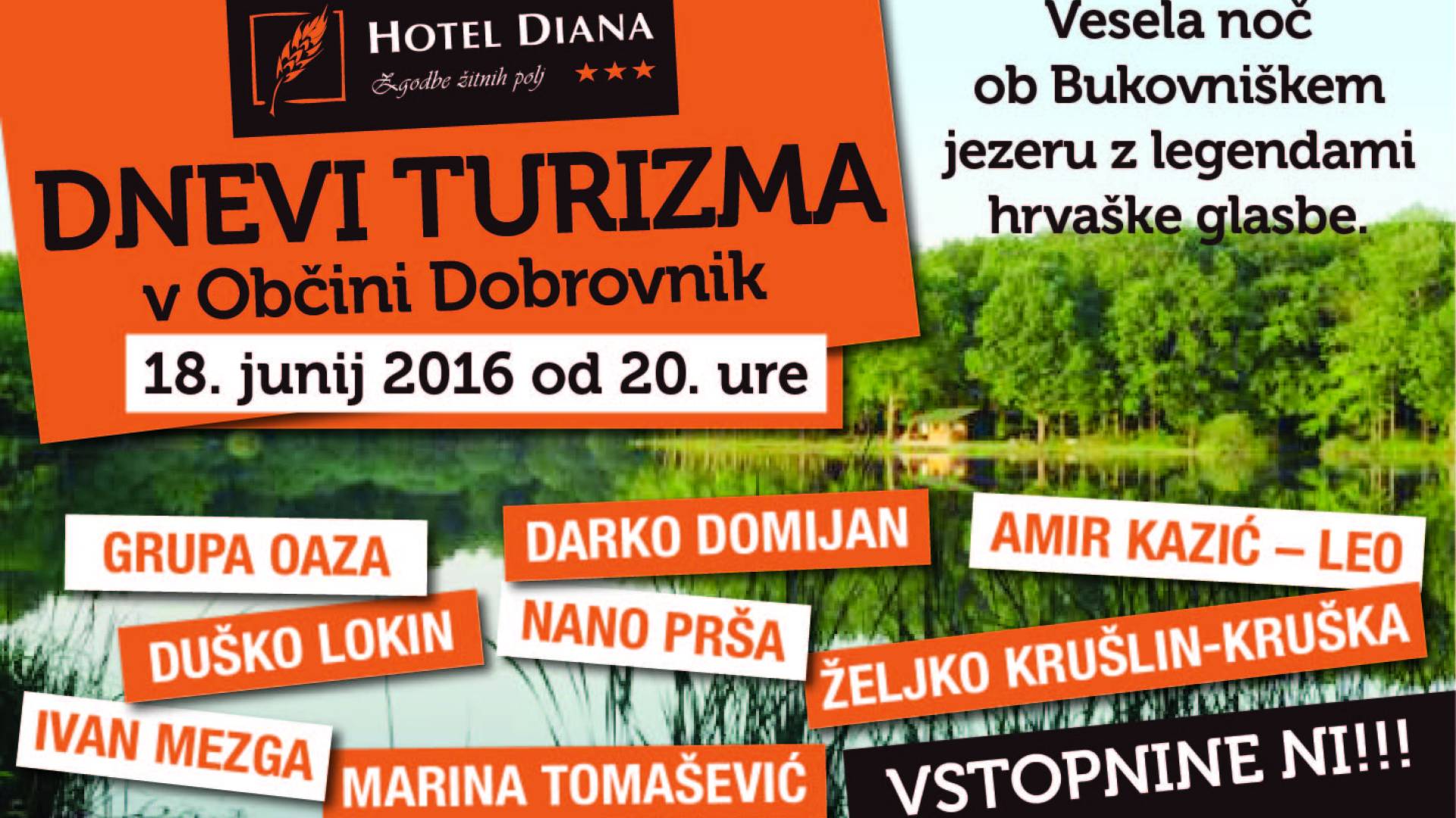v veliko veselje nam je, da vas lahko tudi letos povabimo na DNEVE TURIZMA V OBČINI DOBROVNIK, ki se bodo odvijali 18. in 19. junija 2016 ob Bukovniškem jezeru.