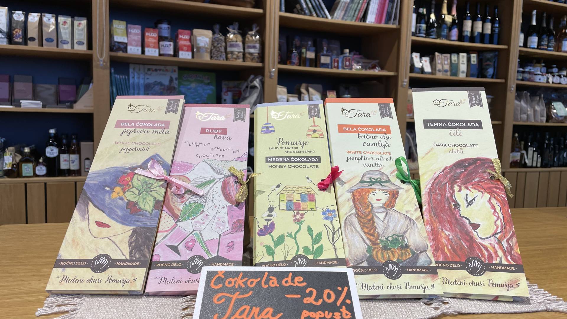 Hiša Tara iz Moravskih Toplic izdeluje ročno in po lastnih receptih omamne premium čokolade in sladokusce razvaja s klasičnimi čokoladami ter čokoladami z izbranimi okusi kot so bučno olje, sončnična semena, med, poprova meta, kava in seveda z okusom prekmurske gibanice. Vse čokolade ponujamo z 20 % popustom do 28. novembra 2021.
