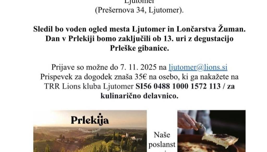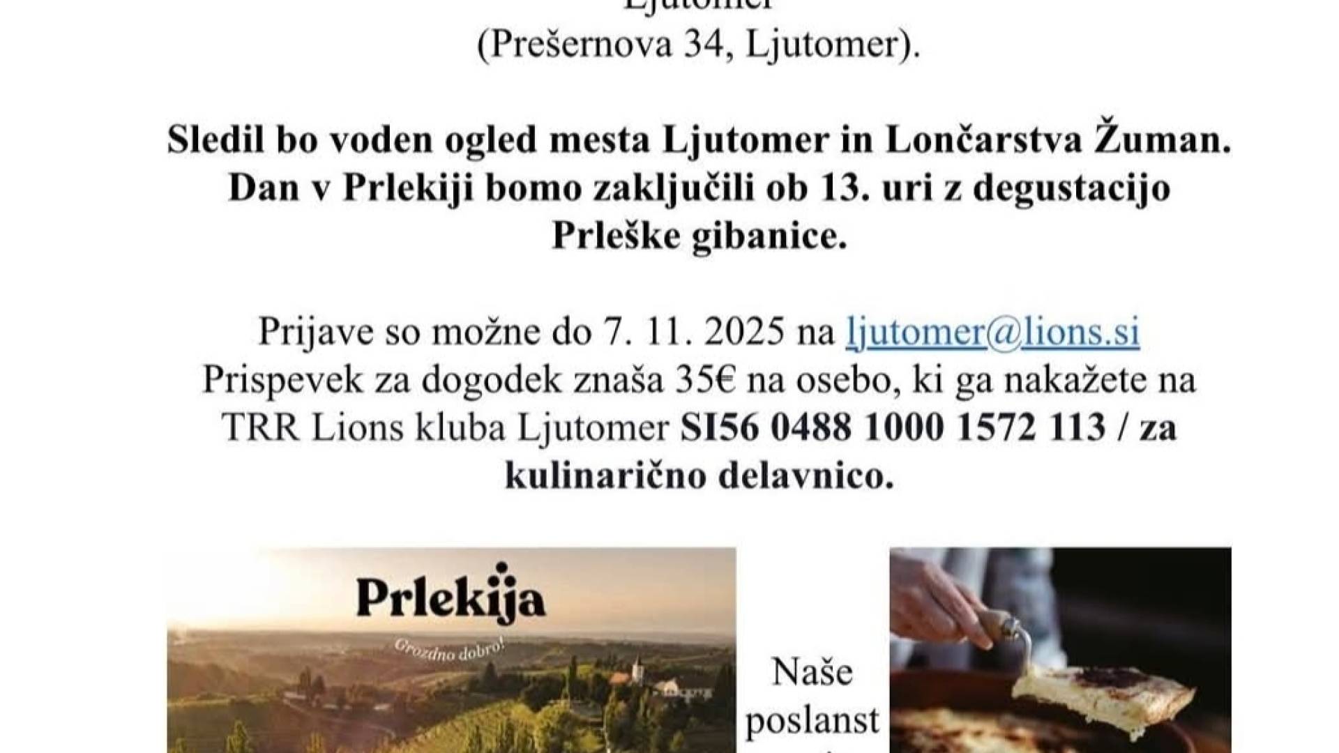 Gimnazija Franca Miklošiča-LjutomerLions Klub Ljutomer in Leo Klub Ljutomer organizira kulinarično delavnico Prleških dobrot. Priprava Prleške gibanice in ajdovega krapca.
