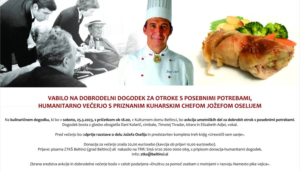 DOBRODELNI DOGODEK ZA OTROKE S POSEBNIMI POTREBAMI, HUMANITARNA VEČERJA S PRIZNANIM KUHARSKIM CHEFOM JOŽEFOM OSELIJEM
