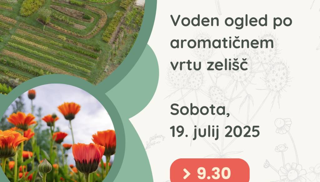 Preživi poletno dopoldne med aromatičnimi in zdravilnimi rastlinami in se prepusti naravnim aromam. Skupaj bomo spoznali nekaj poglavitnih aromatičnih rastlin vrta in njihovo uporabo v aromaterapiji, okušali zeliščne napitke in vonjali hidrolate. Doživetje je primerno za vse tiste, ki si želijo stika z naravo, umiritve in navdiha.