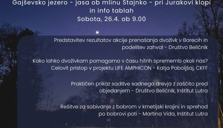 Predstavitev rezultatov akcije prenašanja dvoživk v Borecih in podelitev zahval – Društvo Beličnik Kako lahko dvoživkam pomagamo v času hitrih sprememb okoli ...