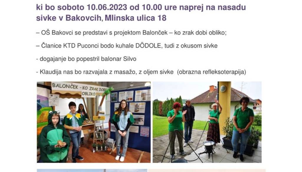 Druženje na nasadu sivke v Bakovcih Jana Bohar | 8. junij 2023 09:59 v Termin Sobota, 10. junij 2023 10:00 Lokacija Bakovci Vabljeni!