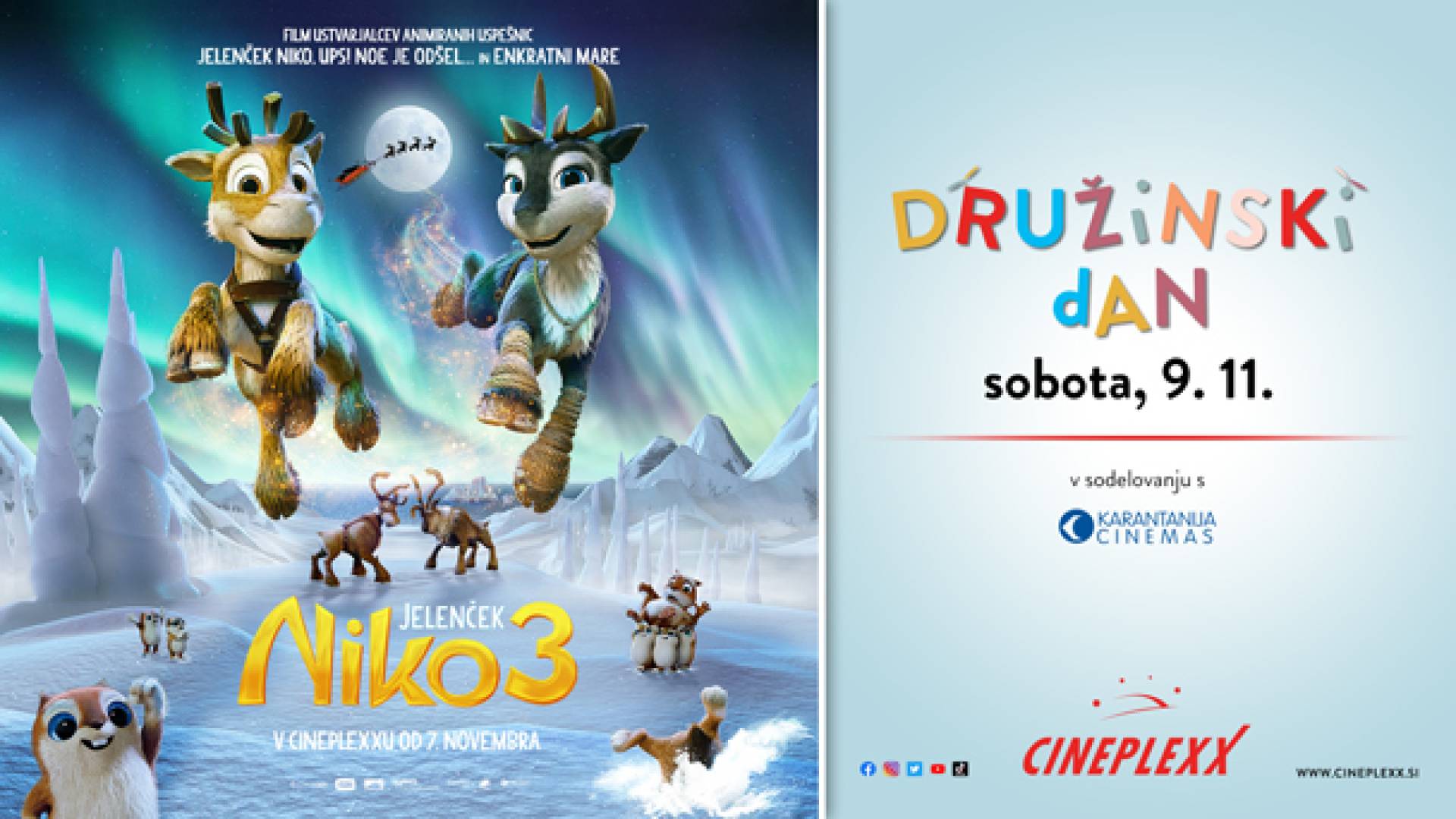 V kinu Cineplexx (Maximus) v Murski SobotiPridružite se nam na DRUŽINSKEM DNEVU s filmom JELENČEK NIKO 3, v soboto, 9. novembra 2024, v Cineplexxu Murska Sobota!