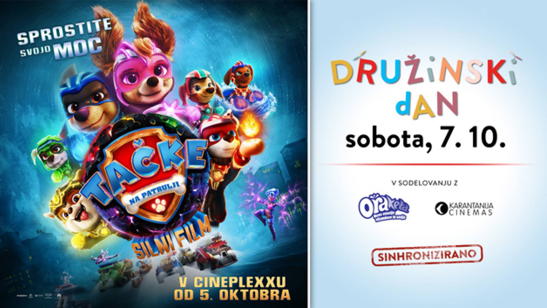 V kinu Cineplexx (Maximus) v Murski SobotiPridružite se nam na DRUŽINSKEM DNEVU s filmom TAČKE NA PATRULJI: SILNI FILM, v soboto, 7. oktobra.
