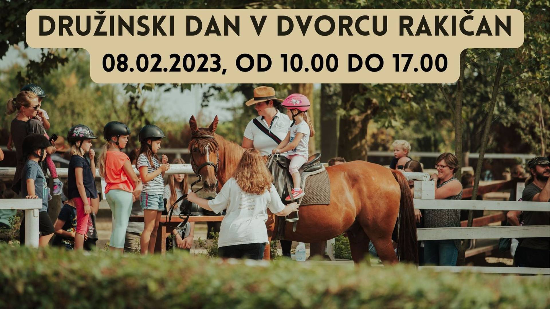 Konjeniški center Dvorec Rakičan za vas pripravlja bogat program z jahanjem konj v maneži, vožnja s kočijo, možnost vpisa v jahalno šolo, ... Program bo potekal med 10.00 - 11.30 in 14.00 - 15.30.