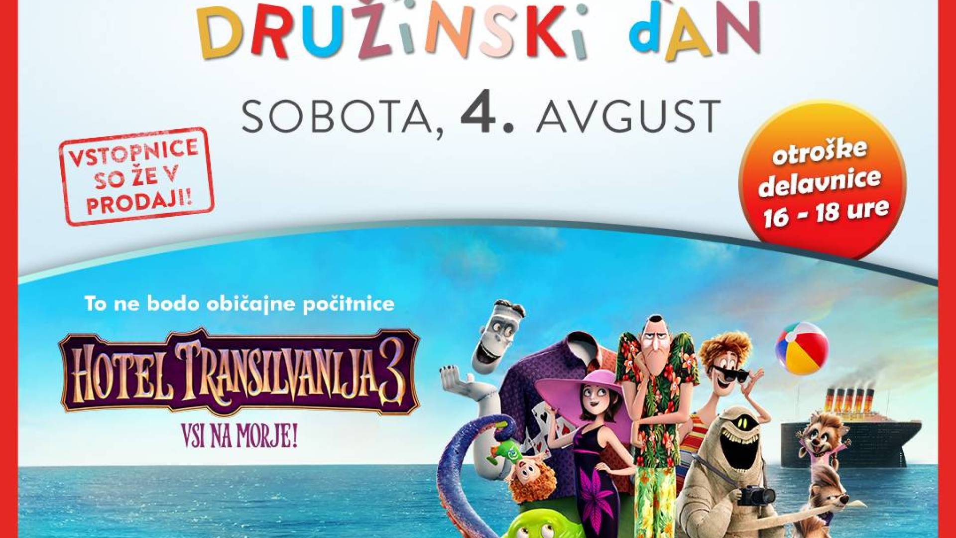 V kinu Cineplexx (Maximus) v Murski SobotiHotel Transilvanija 3: Vsi na morje! prihaja na velika platna v Cineplexx v četrtek, 2. avgusta. V soboto pa najmlajše čaka Družinski dan. Od 16. ure bodo v preddverju Cineplexxa Murska Sobota otroški kotički z ustvarjalnimi delavnicami, pobarvankami in baloni.