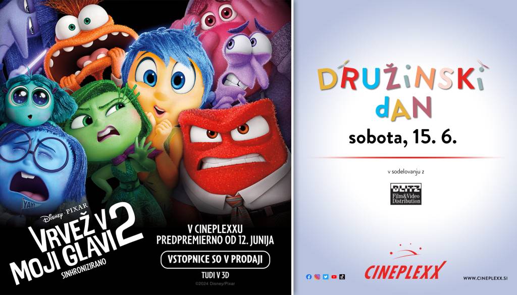 V kinu Cineplexx (Maximus) v Murski SobotiPridružite se nam na DRUŽINSKEM DNEVU s filmom VRVEŽ V MOJI GLAVI 2, v soboto, 15. junija 2024, v Cineplexxu Murska Sobota!