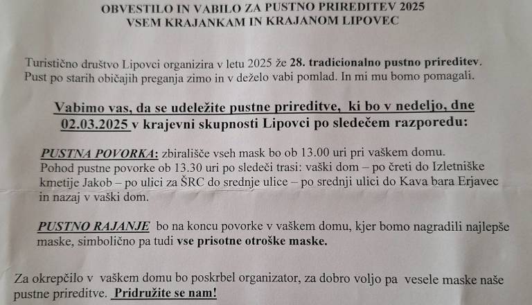 Seveda bo poskrbljeno tudi za pijačo, pustne krofe in sladke pustne miške TD Ljutomer❗️ 🎉🎊