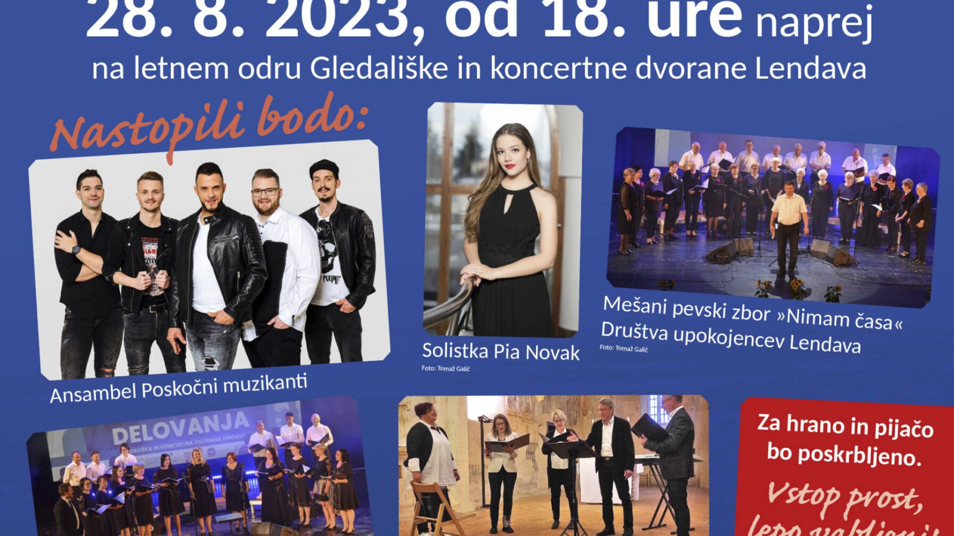 - Nastopi pevskih zborov: KPZ Vita, skupina Euterpe, MEPZ Nimam časa DU Lendava, MVS Lindua & Lindenau
