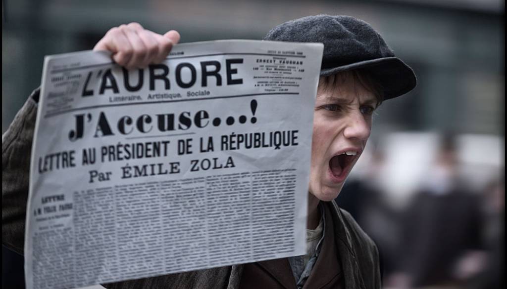 Roman Polanski pripoveduje zgodbo o aferi Dreyfus, političnem škandalu, ki je na koncu 19. stoletja pretresel Francijo in svet. Film je prejel veliko nagrado žirije na Beneškem filmskem festivalu.