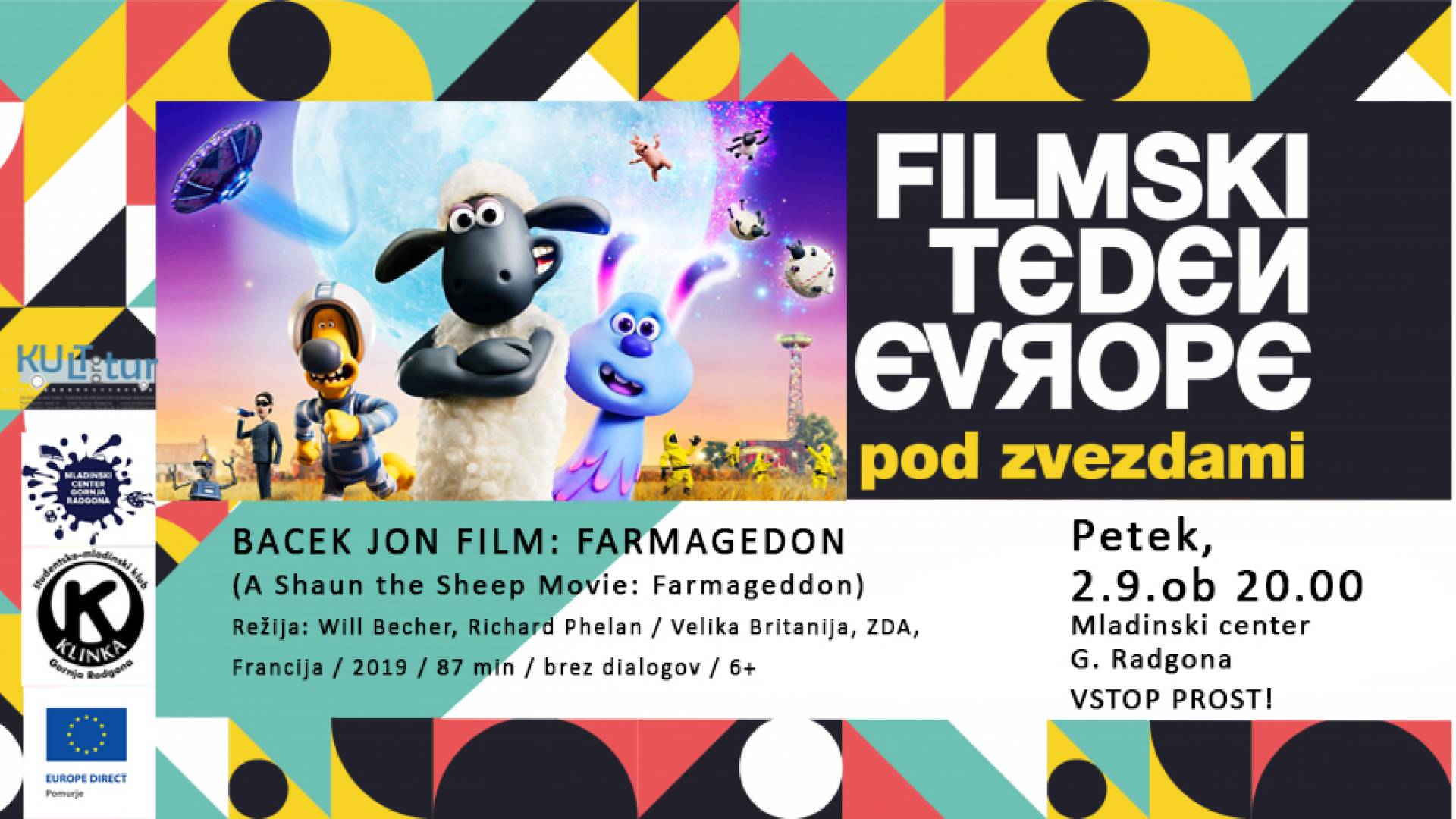 Informacijska točka Europe Direct Pomurje, Študentsko-mladinski klub Klinka in Mladinski center Gornja Radgona vabijo na brezplačno projekcijo v okviru Filmskega tedna Evrope pod zvezdami 2022.