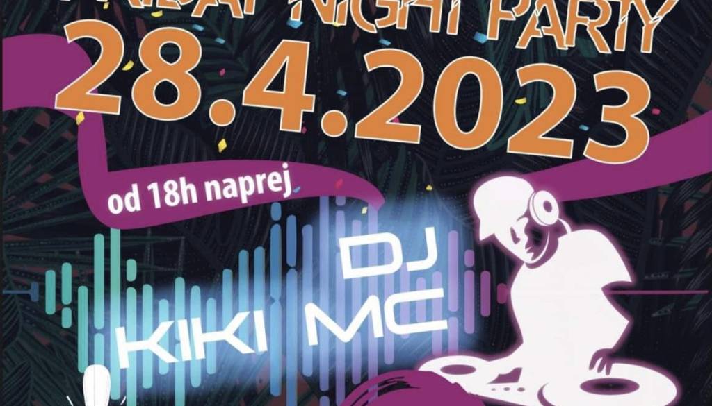 FRIDAY NIGHT PARTY, 28. 4. 2023 Jana Bohar | 19. april 2023 10:03 v Termin Petek, 28. april 2023 18:00 Lokacija D-D GYM & Coffee, Cankova DJ KIKI MC Vabljeni!