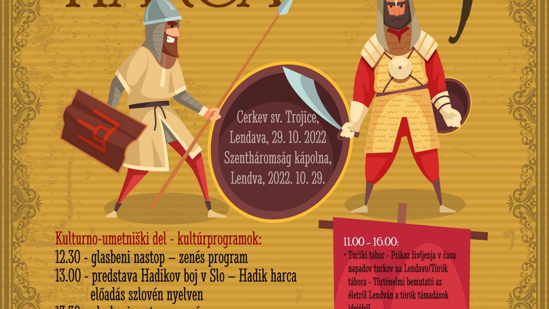 - predstava - legenda o kapetanu Hadiku (v SLO in HU jeziku - gledališka skupina Leszsz Társulat)