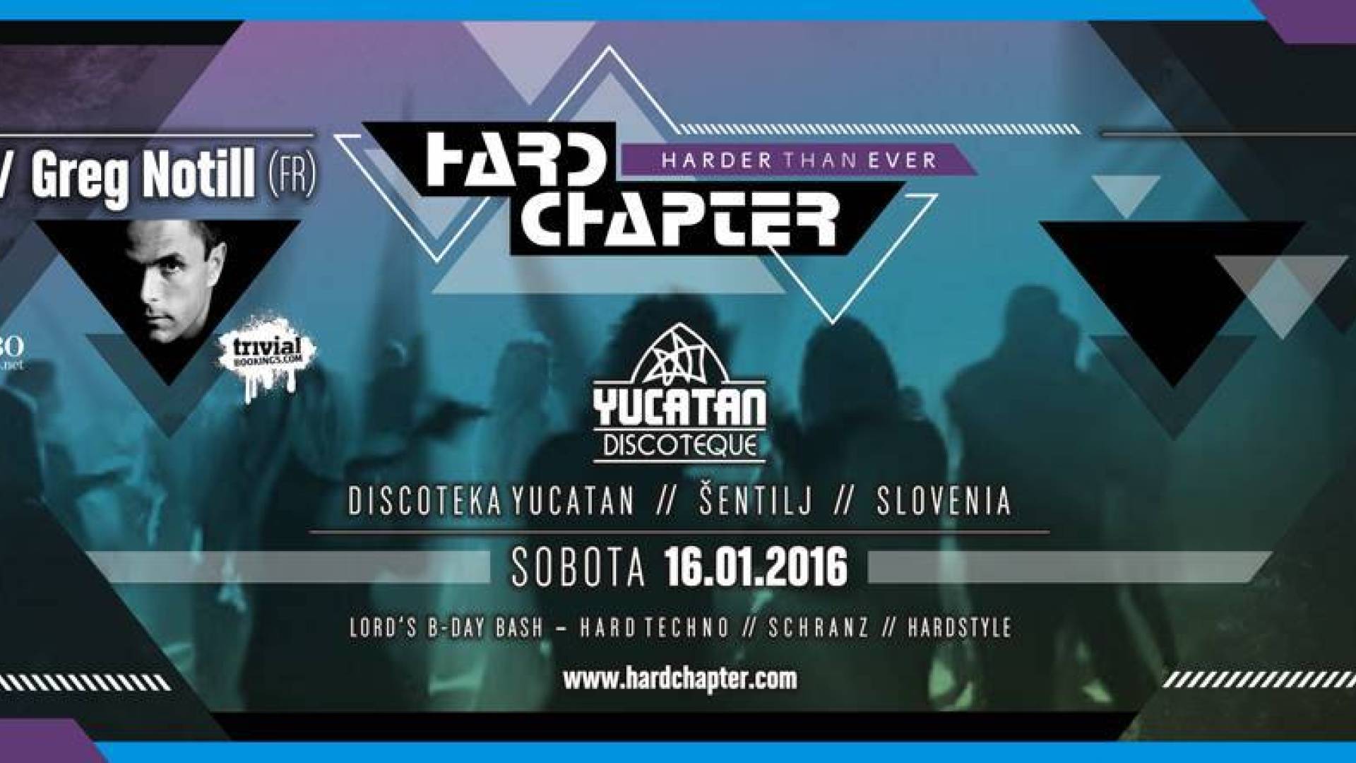 Diskoteka Yucatan Mariborska cesta 39 2212 ŠentiljZačetki leta so vedno nekaj posebnega in po letošnjem januarskem Hard Chapterju se spodobi, da vse skupaj nadgradimo. Za to bomo izkoristili L0rD-ov Bday, zbudili Yucatan v Šentilju in povabili primerne goste.