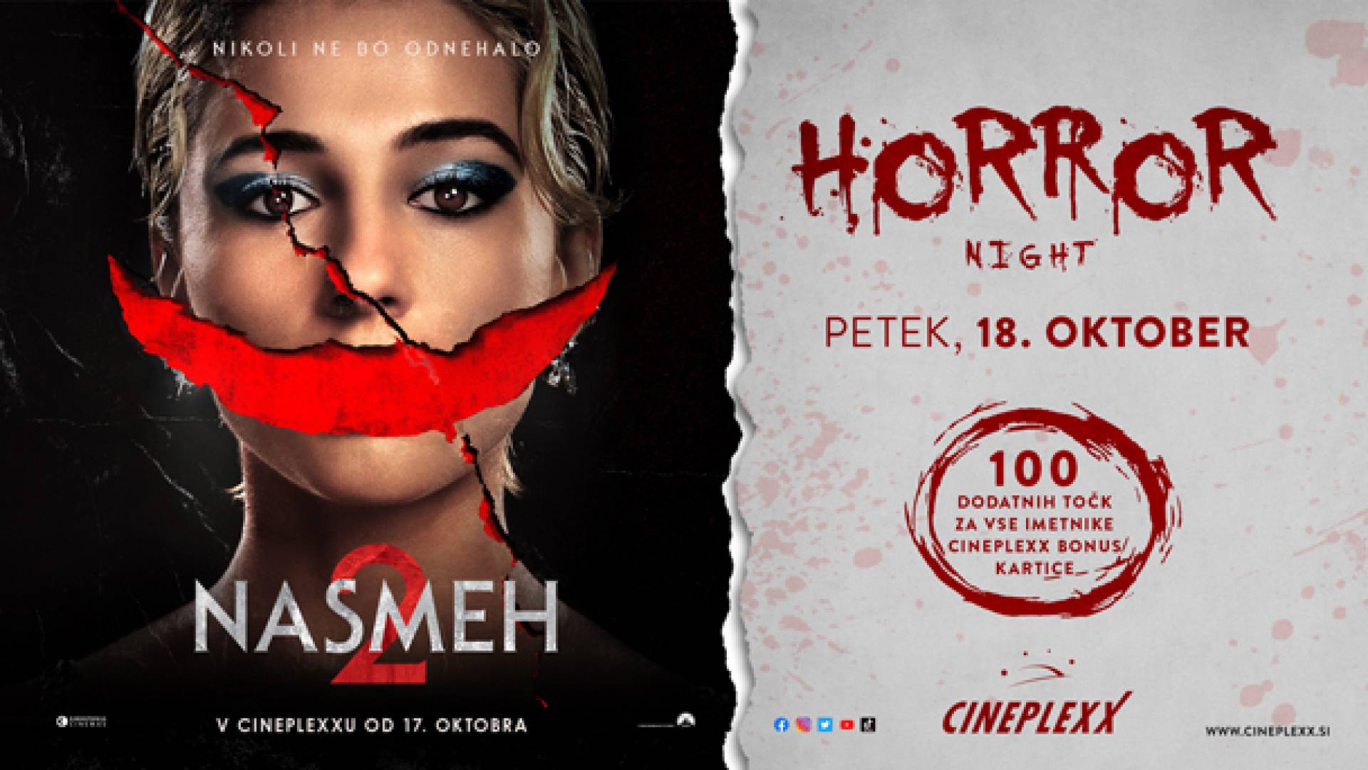V kinu Cineplexx (Maximus) v Murski SobotiPridruži se nam na Horror nightu s filmom NASMEH 2, ki bo v petek, 18. oktobra 2024! Imetnike naše CBC kartice bomo nagradili s 100 dodatnimi točkami!