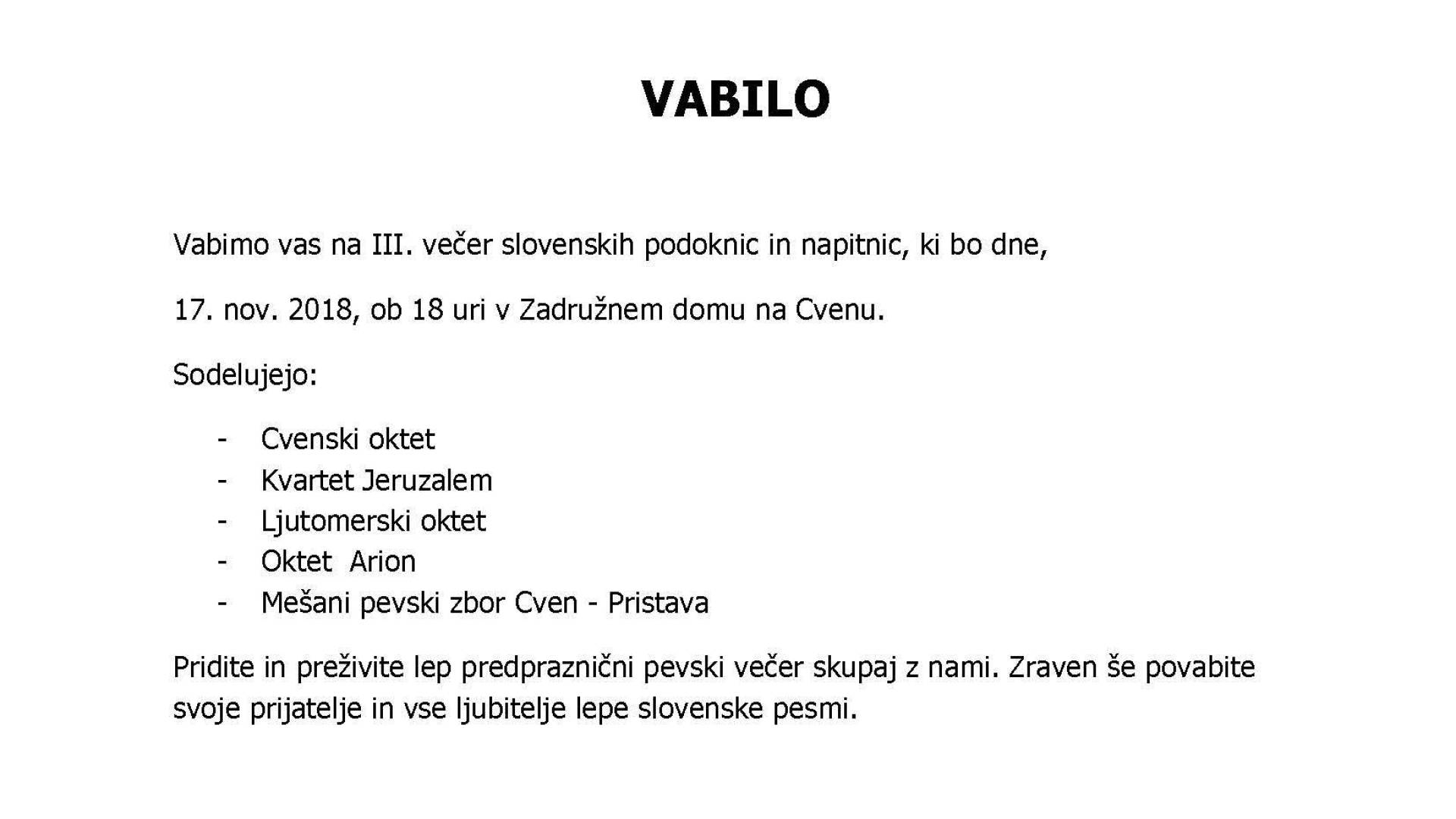 III.večer slovenskih podoknic in napitnic