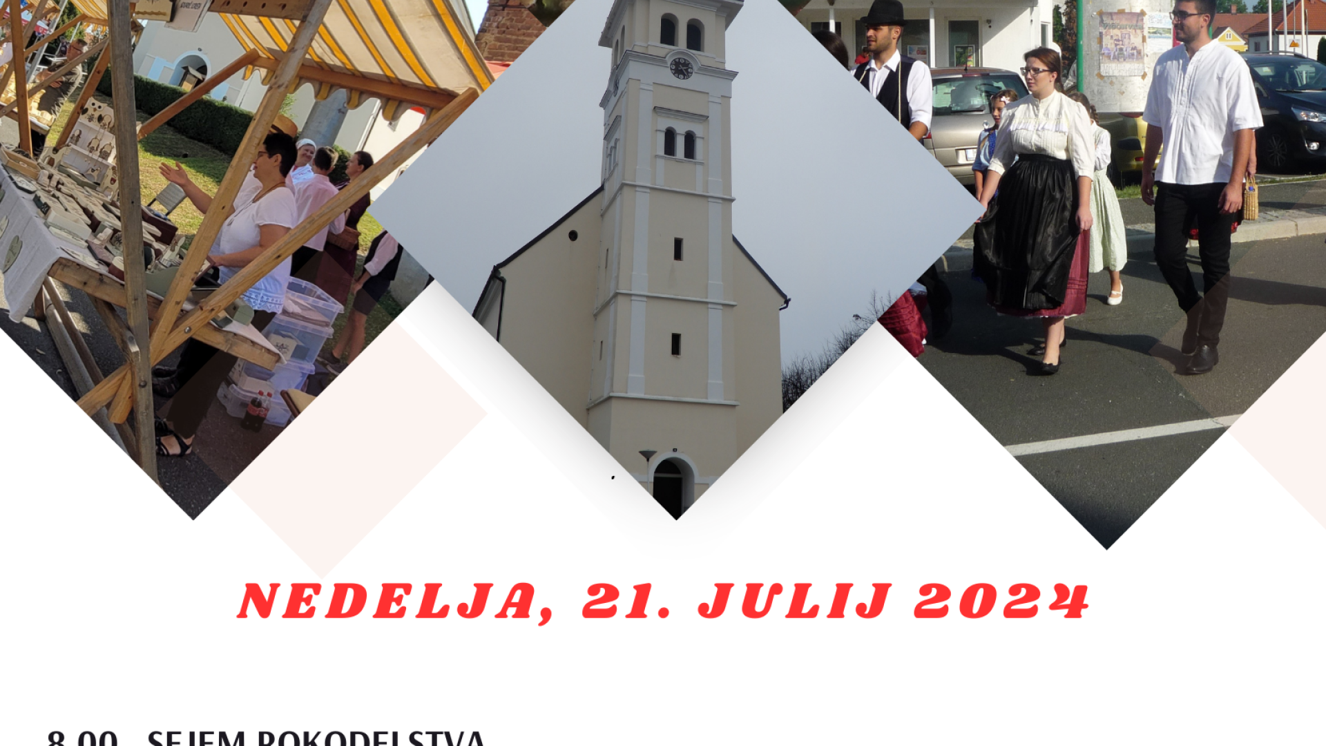 Pred cerkvijo Sv.Jakoba v DobrovnikuSejem rokodelstva in domače obrti. V nedeljo, 21. julija 2024 od 8.00 ure dalje.