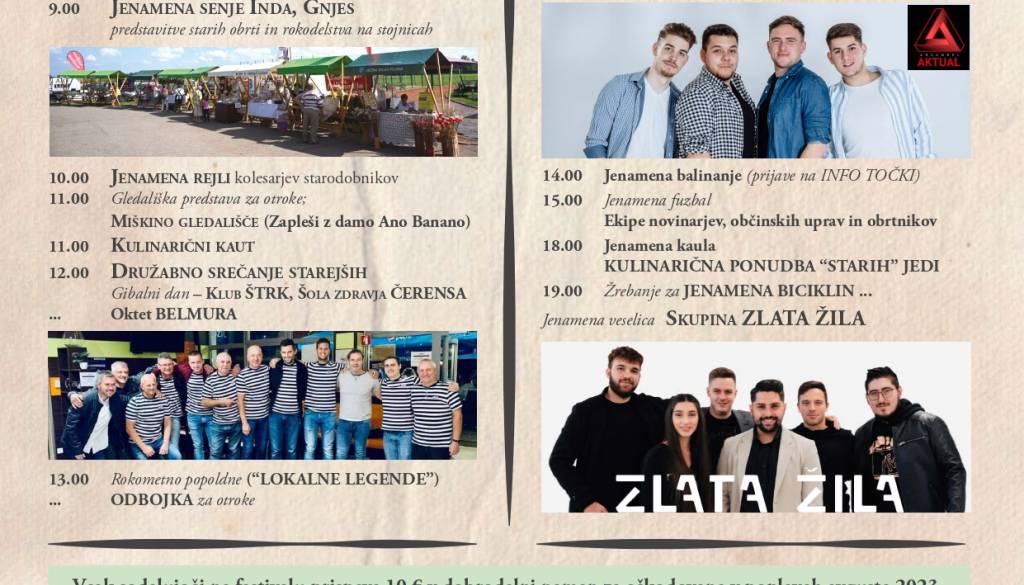 Jenamena fest 2023 Jana Bohar | 17. avgust 2023 10:55 v Termin Sobota, 19. avgust 2023 8:00 Lokacija Športni park Črenšovci Vabljeni!