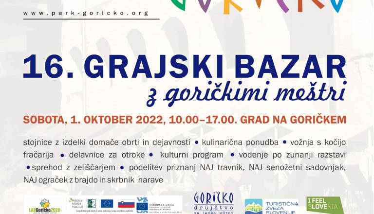 V soboto, 1. oktobra 2022, 10.00–17.00, grad Grad na Goričkem Javni zavod Krajinski park Goričko in Goričko drüjštvo za lepše vütro vabita na že 16. bazar na ...