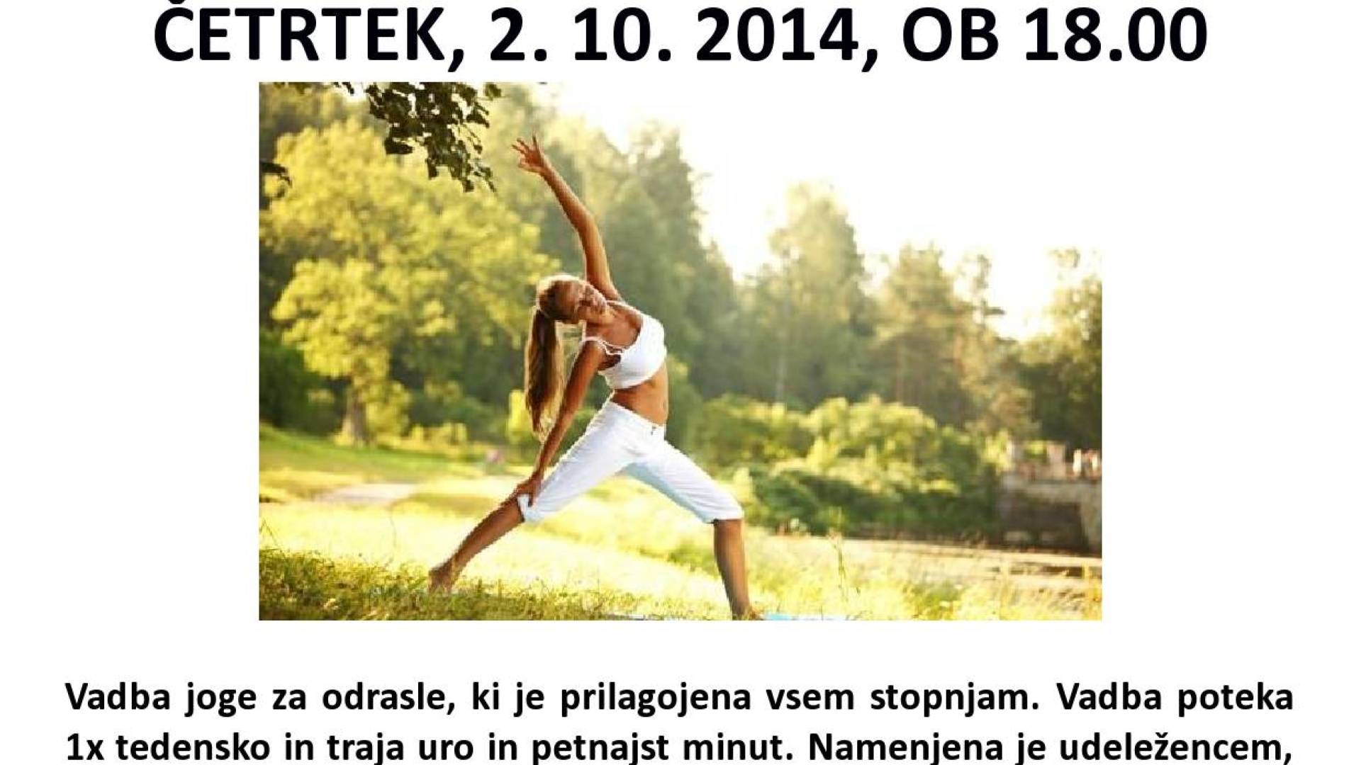 Sofija medgeneracijska hiša Lendava Glavna ulica 48 9220 LendavaVadba joge za odrasle s Tatjano Baligač. Vadba je prilagojena vsem stopnjam, poteka 1x tedensko in traja uro in 15 minut. Namenjena je udeležencem, ki so vpisani v jesenski semester oz. po naknadni prijavi. S seboj, prosimo, prinesite telovadno podlogo in flaško vode. Obvezne so predhodne prijave zaradi omejitve števila udeležencev.