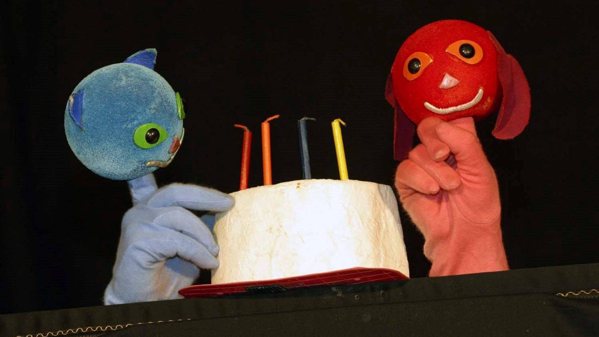 Predstava je primerna za otroke od dveh in pol let dalje. Kužek in muca sta majhni lutki, a velika prijatelja. Nekaj delata prav, nekaj pa narobe. Pereta perilo, pomivata tla, se pogovarjata s sončkom, a najraje od vsega se igrata skrivalnice ali pa se lovita. Včasih se jima zgodi tudi kakšna nezgoda in potrebujeta prvo pomoč. Od silnega igranja in dela postaneta lačna in seveda si spečeta slastno torto… No, in ko utrujena ležeta spat, se gresta v sanjah zopet igrat.