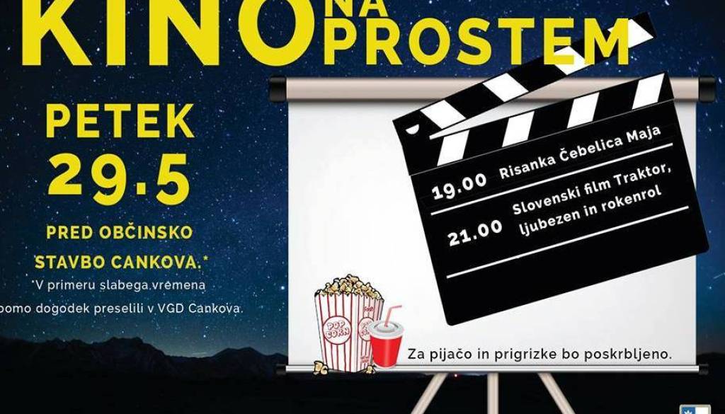 PRED OBČINSKO STAVBO CANKOVALetošnji občinski praznik bomo obeležili tudi z druženjem ob dobrem filmu, v lepem ambientu majskega večera.