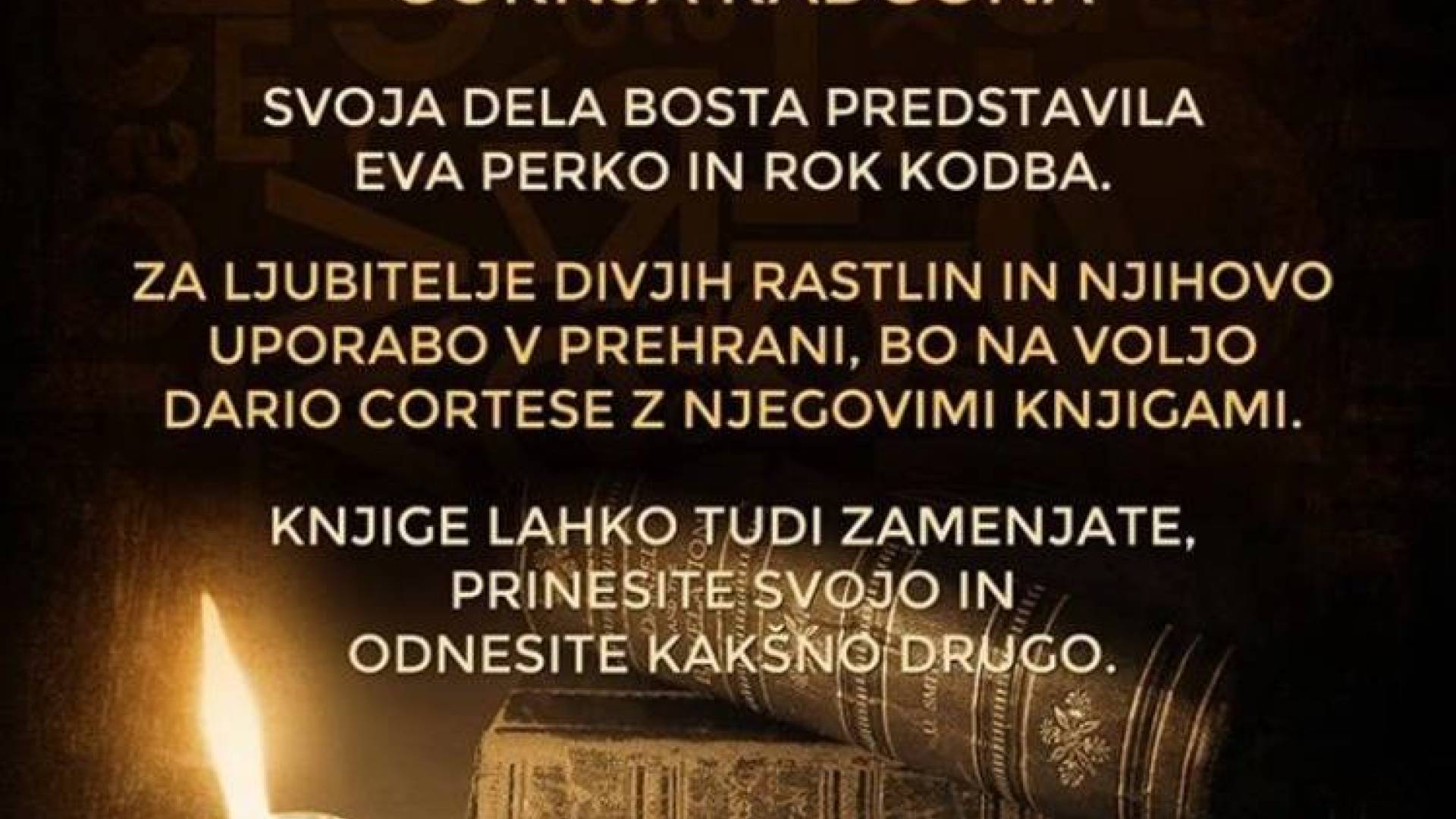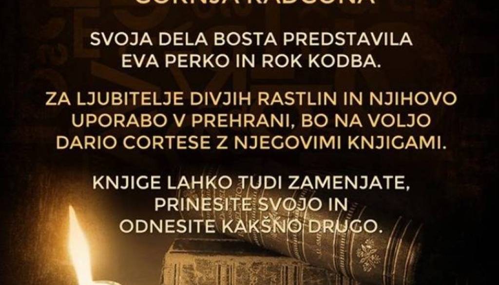 Muzej Špital v Gornji RadgoniV sodelovanju s KUD Bunker vas v soboto, 21. aprila 2018, vabimo v Špital na Knjižni sejem s pestrim kulturnim programom. Svoja dela bosta tokrat predstavila Eva Perko in Rok Kodba, za ljubitelje divjih rastlin pa bo na voljo Dario Cortese. Za prijetno vzdušje bosta s krajšim koncertom poskrbela Darko Horvat in Tomaž Hojnik. Vabljeni!