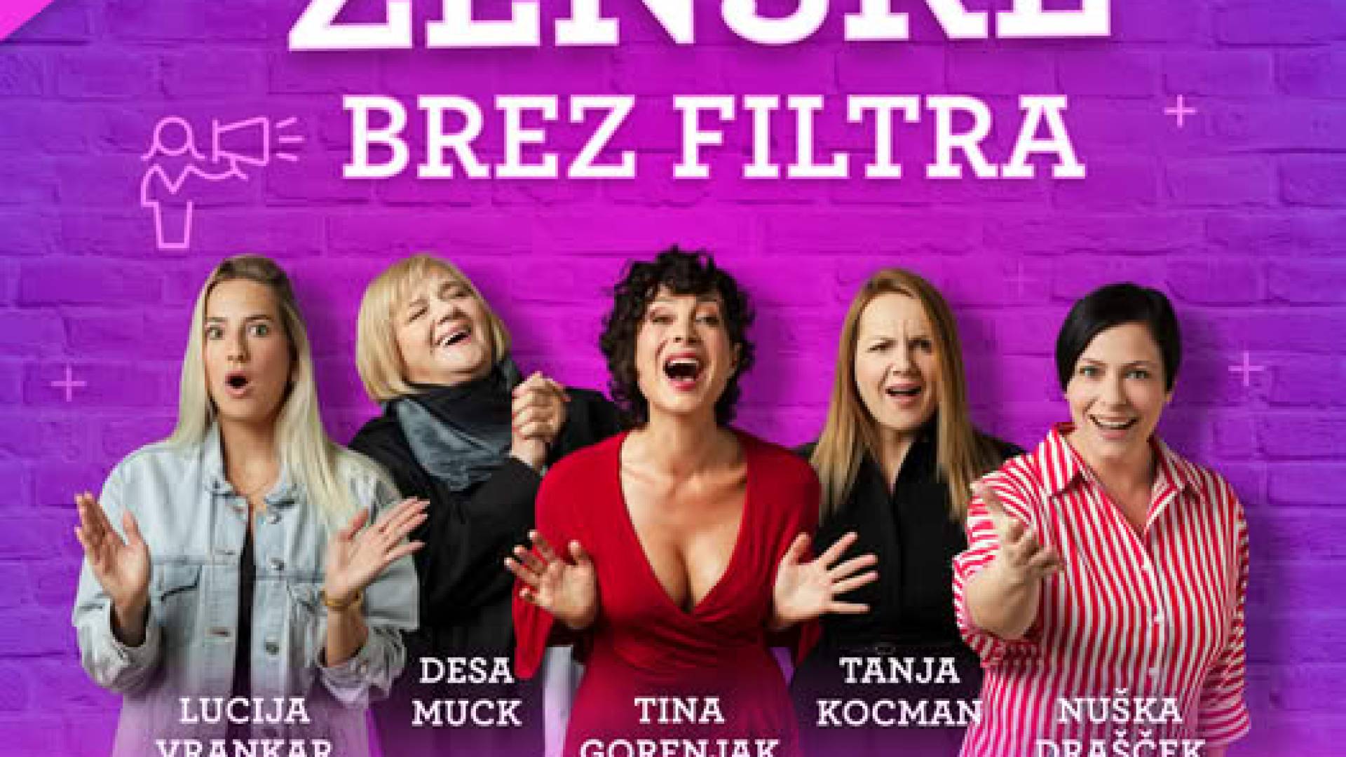 Ženske brez filtra je komedija, kjer 5 žensk brez zadržkov govori o temah, ki so marsikomu blizu, a se jih redko kdo upa naglas izreči. Z iskrenostjo in humorjem obravnavajo različne faze življenja: odnose z moškimi, staranje, starševstvo, spolnost in iskanje lastnih strasti.