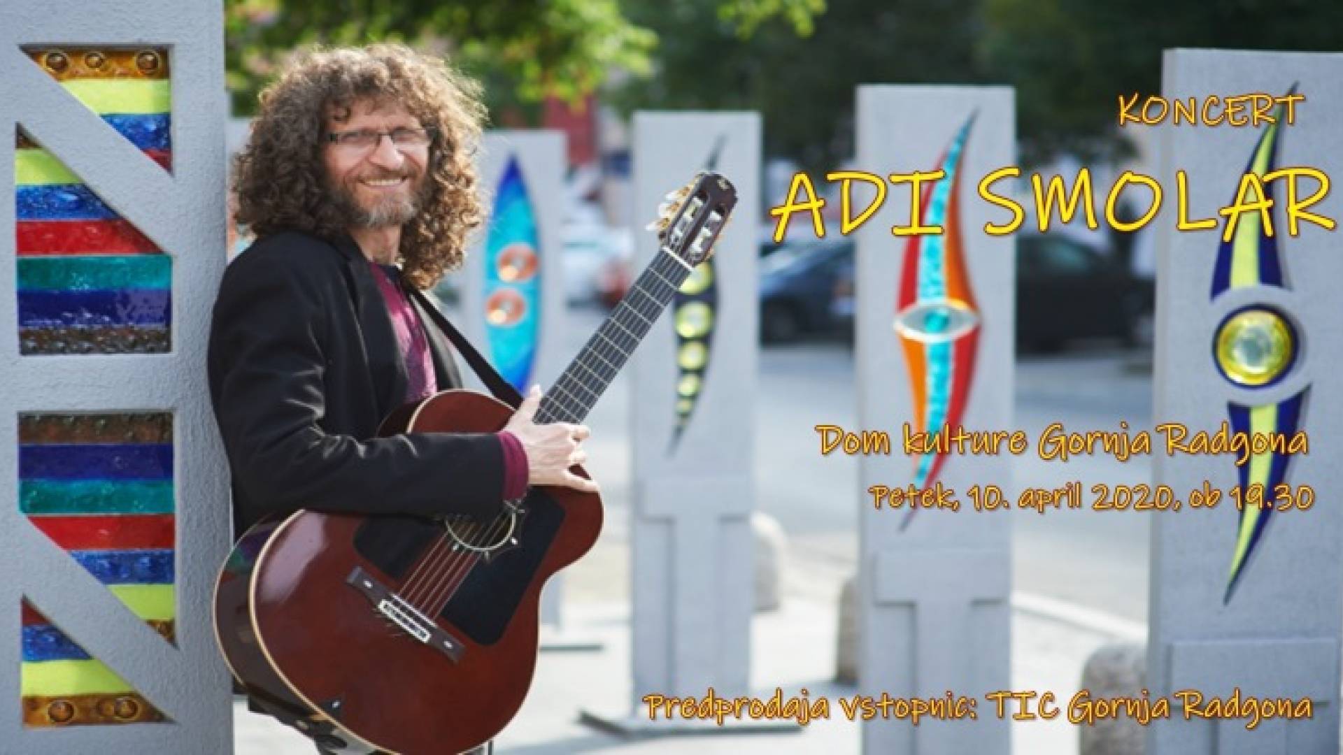 Adi Smolar, ki je v svoji glasbeni karieri prejel številne nagrade tako s strani poslušalcev kot strokovne javnosti, za vas pripravlja nepozaben večer. Na svoj kritičen, razmišljujoč, vendar zelo hudomušen način nam bo predstavil svoje skoraj ponarodele pesmi. Adi velja za enega izmed najizvirnejših, najplodnejših in najpopularnejših kantavtorjev pri nas. Svoje poslušalce je razveselil s kar 14 samostojnimi albumi.