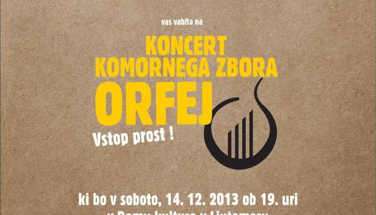 Dom kulture LjutomerPevski zbor Orfej iz Ljutomera vstopa v petindvajseto leto svojega delovanja. Po zelo uspešni sezoni se bo v soboto, 14. decembra 2013 predstavil na samostojnem koncertu v ljutomerskem Domu kulture. Koncert, ki se bo začel ob 19. uri, organizira Orfej skupaj z občino Ljutomer.