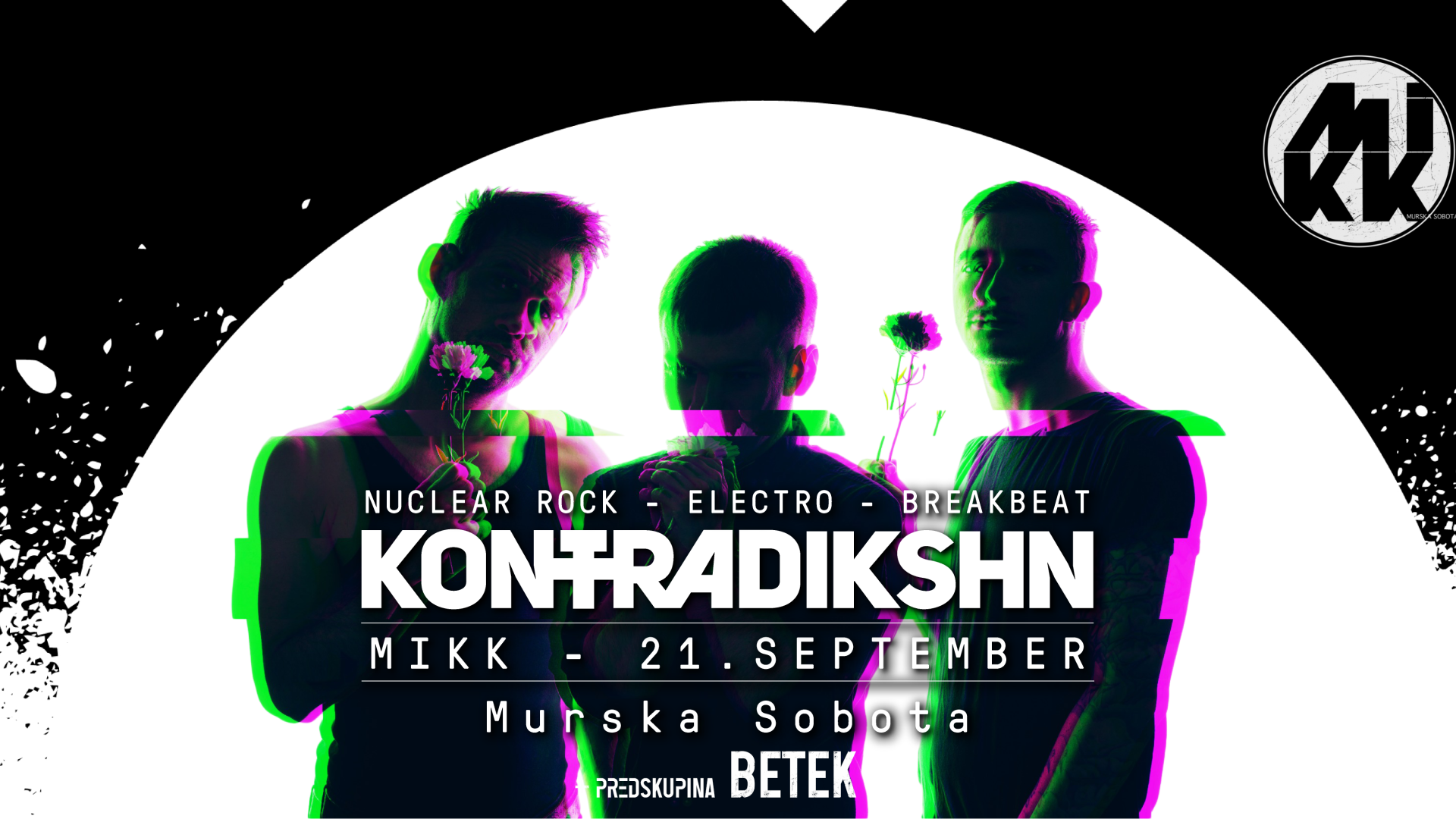 𝐕 𝐌𝐈𝐊𝐊 𝐩𝐫𝐢𝐡𝐚𝐣𝐚 𝐞𝐥𝐞𝐤𝐭𝐫𝐨-𝐫𝐨𝐜𝐤 𝐚𝐭𝐫𝐚𝐤𝐜𝐢𝐣𝐚, 𝐤𝐢 𝐬𝐥𝐢𝐬̌𝐢 𝐧𝐚 𝐢𝐦𝐞 𝐊𝐎𝐍𝐓𝐑𝐀𝐃𝐈𝐊𝐒𝐇𝐍. Skupina, ki premika meje možnega z zlitjem elektronske in klasične glasbe. Da fantje niso samo kar tako, so dokazali med drugim s posebnim nastopom v oddaji Izštekani na Val202, kjer so nastopili skupaj z 75- članskim simfoničnom orkestrom. Za ogrevanje bo poskrbela domača zasedba prleških dečkov, ki so si poimenovali kar Betek.