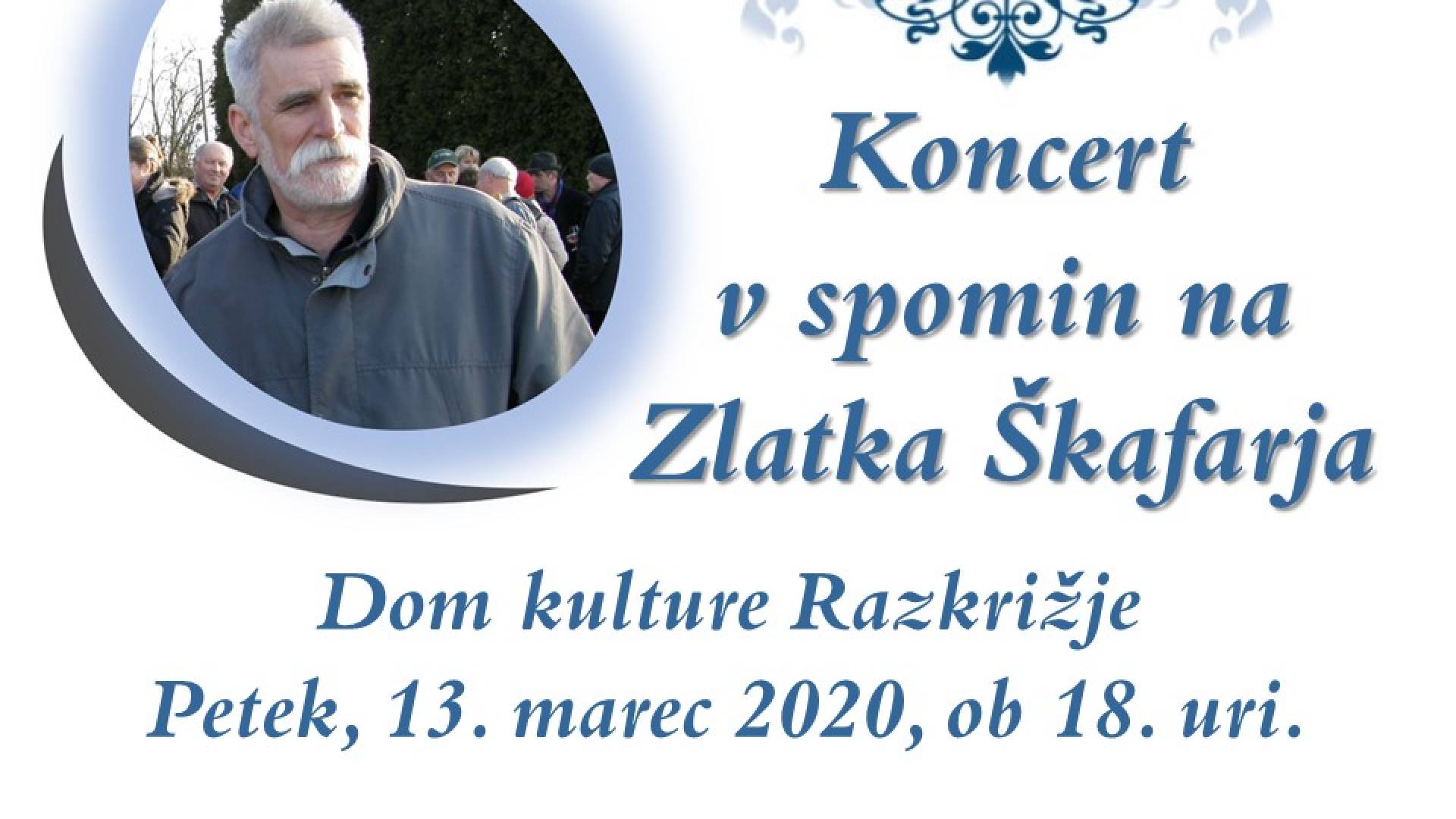 Dom kulture RazkrižjeVabimo vas na koncert v spomin na Zlatka Škafarja, ki bo v petek, 13. marca 2020, ob 18. uri v Domu kulture Razkrižje.