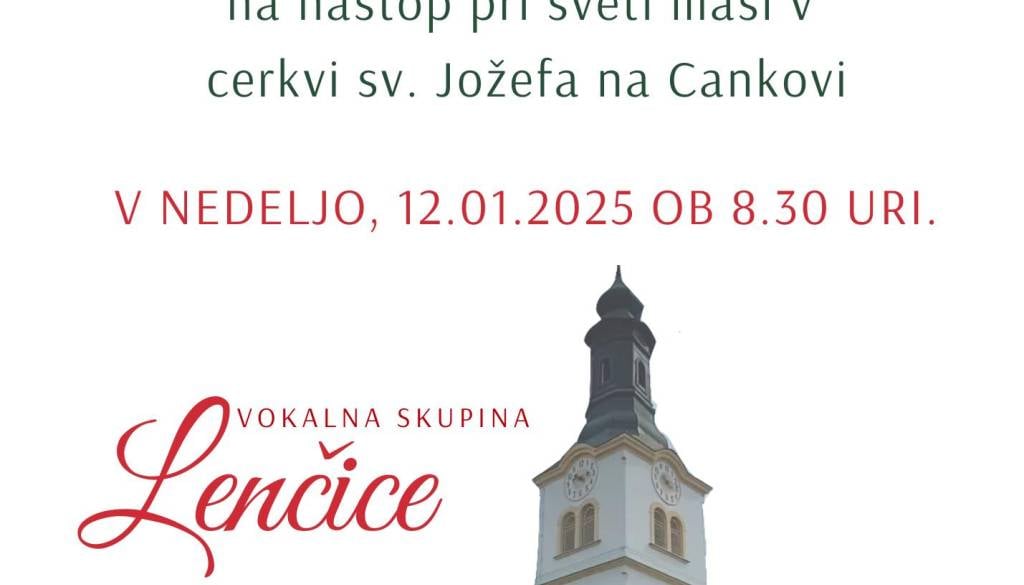 Cerkev sv. Jožefa CankovaV Cerkvi sv. Jožefa na Cankovi bo koncert Vokalne skupine Lenčice.