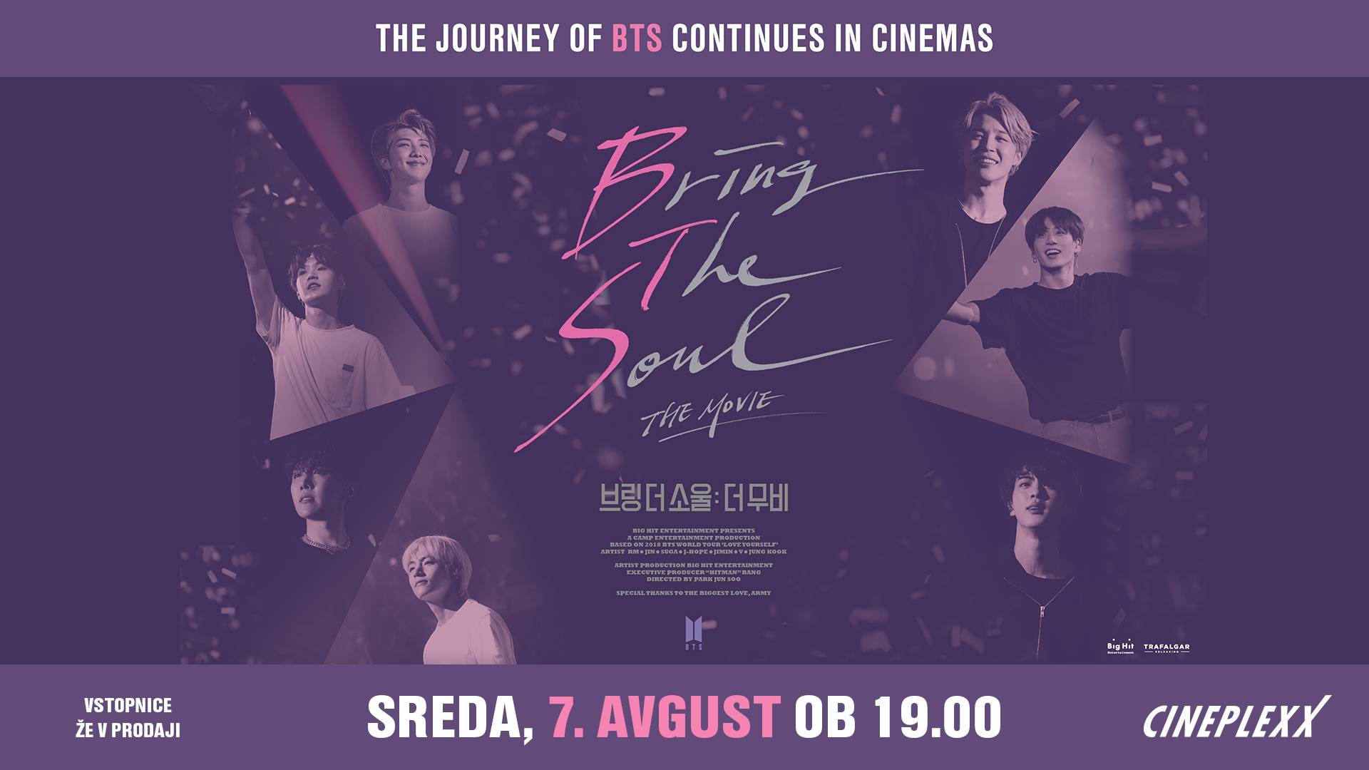 V kinu Cineplexx (Maximus) v Murski SobotiJužnokorejski K-pop band BTS se vrača na velika platna. Ekskluzivna projekcija najbolj zaželenega koncerta tega pletja »BRING THE SOUL« glasbene skupine BTS bo v sredo, 7. avgusta ob 19.00 v vseh Cineplexx kinih. vstopnice že v prodaji https://bit.ly/2FQfNNs