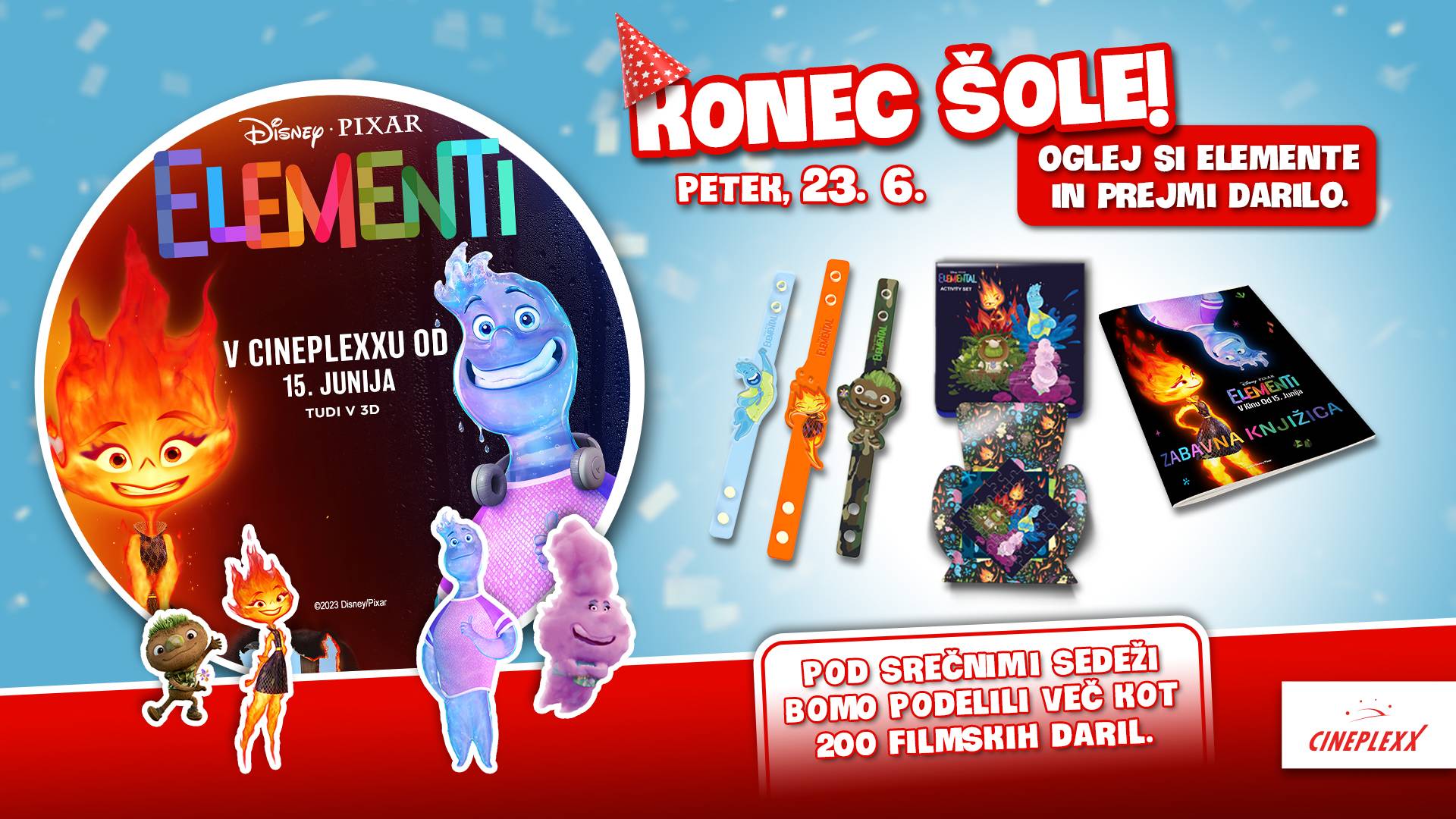 V petek, 23.6. se bo v vseh kinih Cineplexx, na vsaki projekciji risanke ELEMENTI, pod srečnimi sedeži skrivalo nekaj filmskih daril.