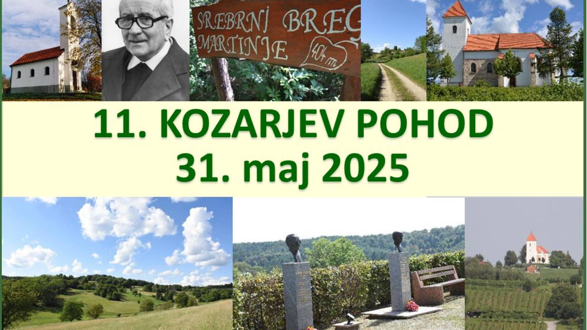 Gornji PetrovciKUD Srebrni breg Martinje in Župnija Odranci vas vabita na 11. Kozarjev pohod, ki bo v soboto, 31. 5. 2025, in sicer od Gornjih Petrovec do Martinja. Pohodniki se bodo od spodnjega dela vasi ob 9.30 podali do Nèdele, kjer bo ob 10.00 sveta maša, nato ogled cerkve in okolice ter pohod skozi Šulince in Ženavlje do Martinja, do kapele in preko Srebrnega brega do pokopališča in športnega centra. Vmes bo okrepčilo v gasilskem domu v Martinju. Pohod bo potekal pod geslom: Ob pesmi zvonov, saj nas bo med drugim pozdravil zvon, ki se že 350 let oglaša iz zvonika nedelske cerkve Svete Trojice.