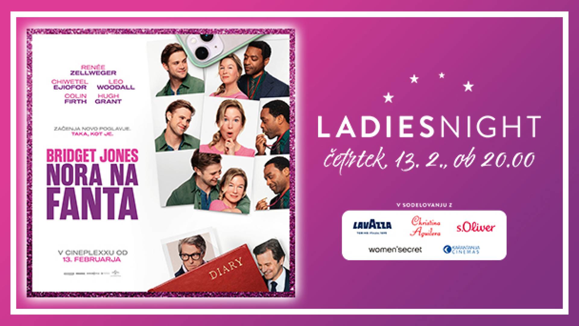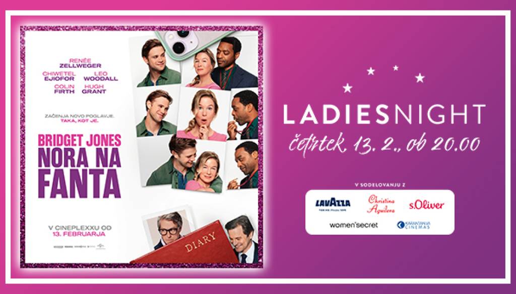 V kinu Cineplexx (Maximus) v Murski SobotiPridruži se nam na Ladies Nightu s filmom BRIDGET JONES: NORA NA FANTA, ki bo v četrtek, 13. februarja 2025 ob 20:00 v Cineplexxu Murska Sobota.